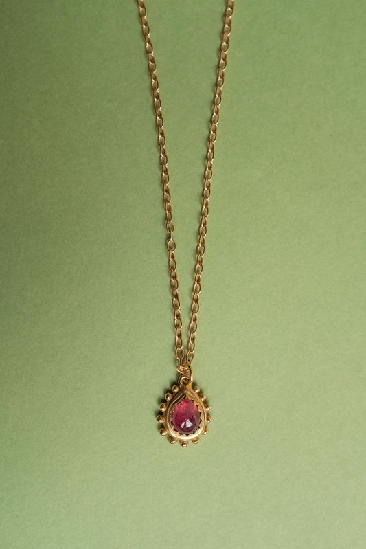 Drop of Dawn Pendant - 20k + Almandine Garnet