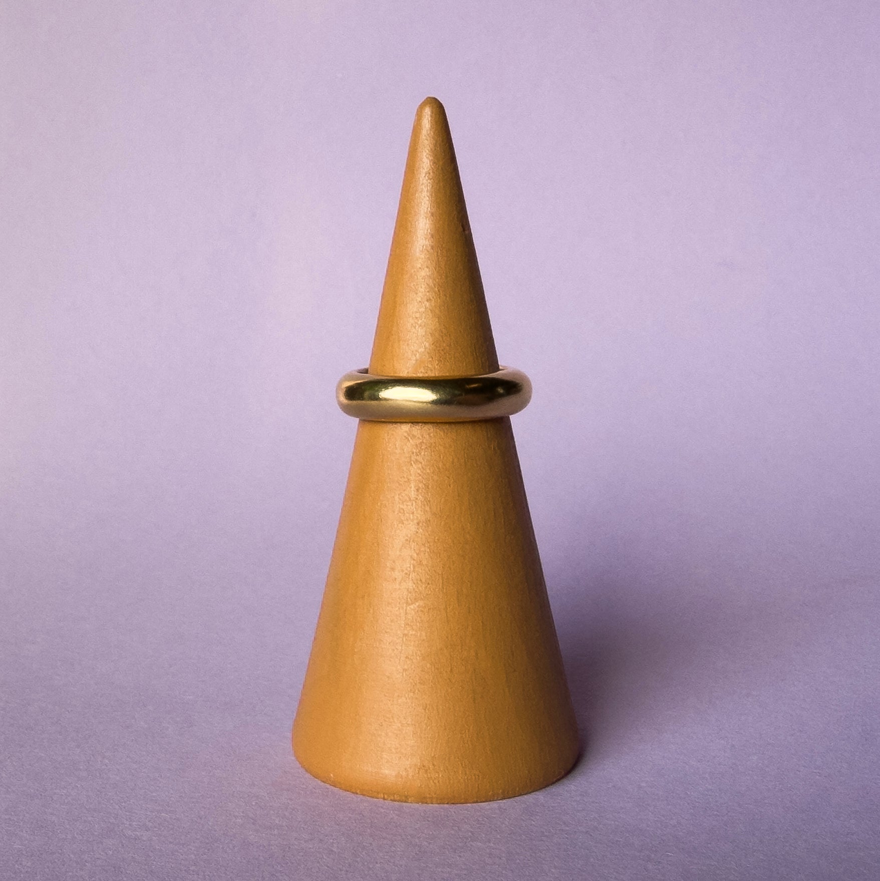 Carved by hand from wax and cast in solid gold, it has a satisfying weight and a smooth, comfortable fit. Its silhouette is bold yet understated — a subtle statement on its own, and the perfect anchor for stacking beside more detailed pieces. Offered in 18k, 20k, or 22k gold, it’s a timeless companion: a ring for everyday wear, or a wedding band for the bold.