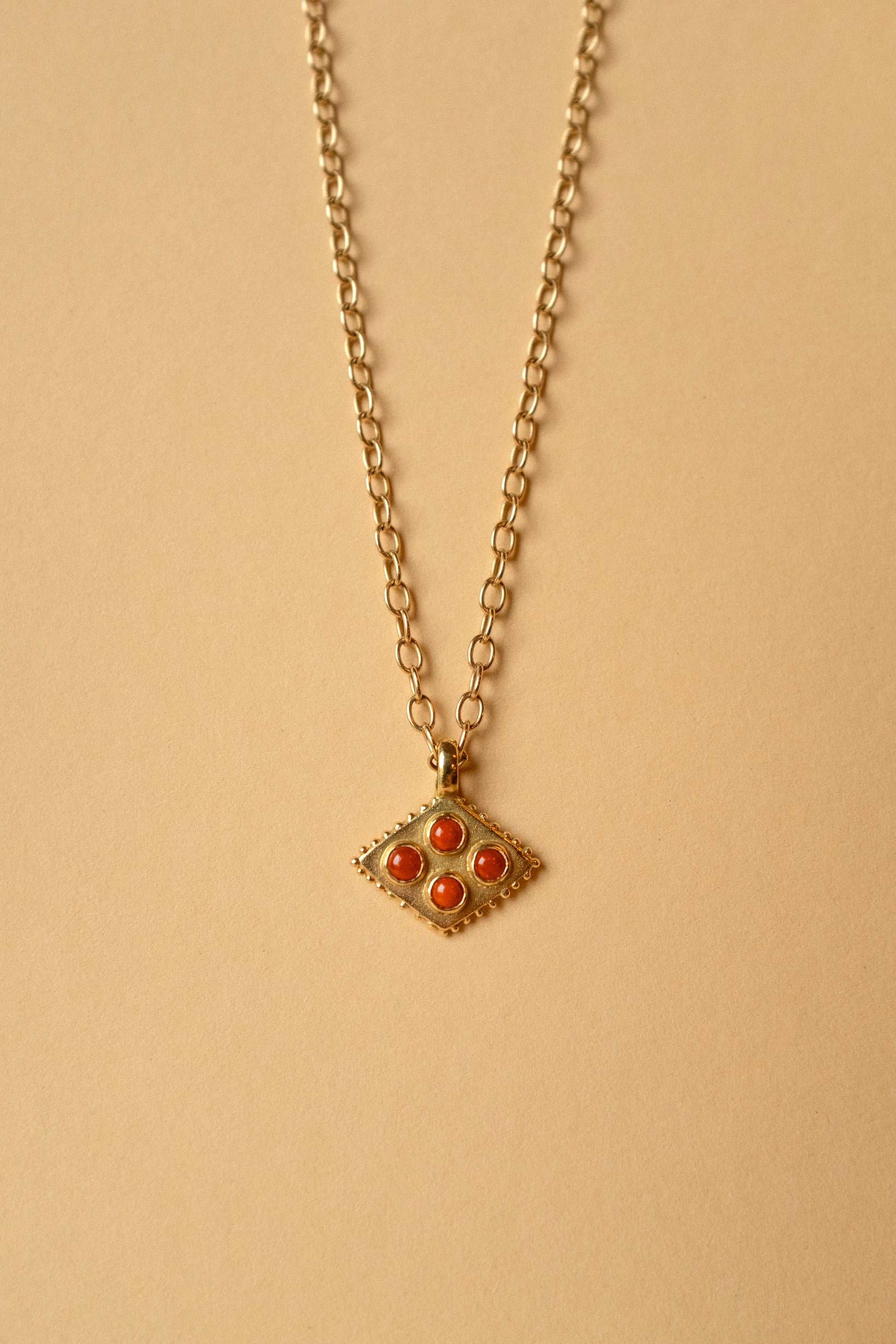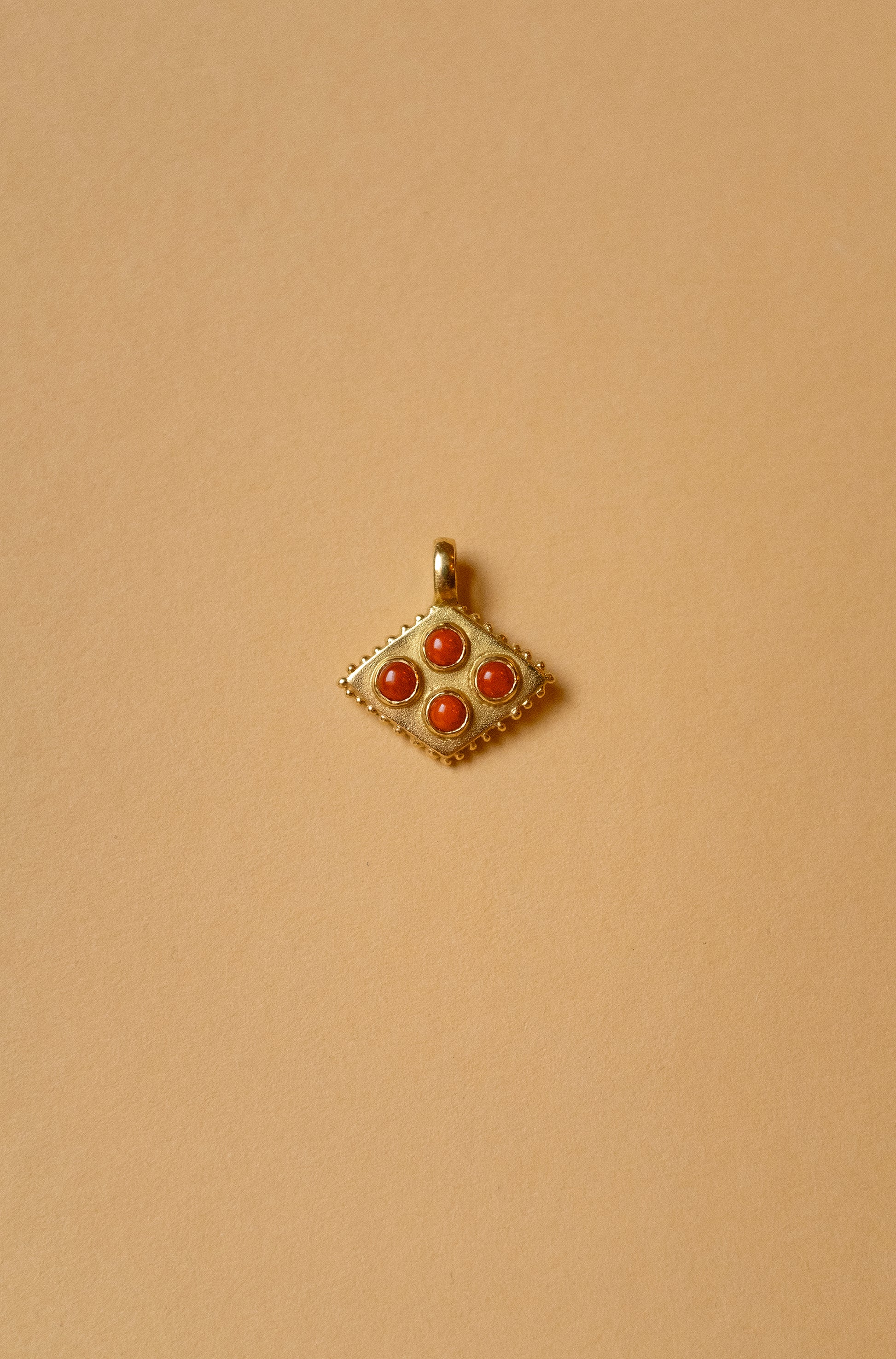This listing is for the Fyra pendant (18k) set with four antique red coral cabochons, ready to ship. For other gemstone options and custom Fyra pendants, please visit this listing HERE.