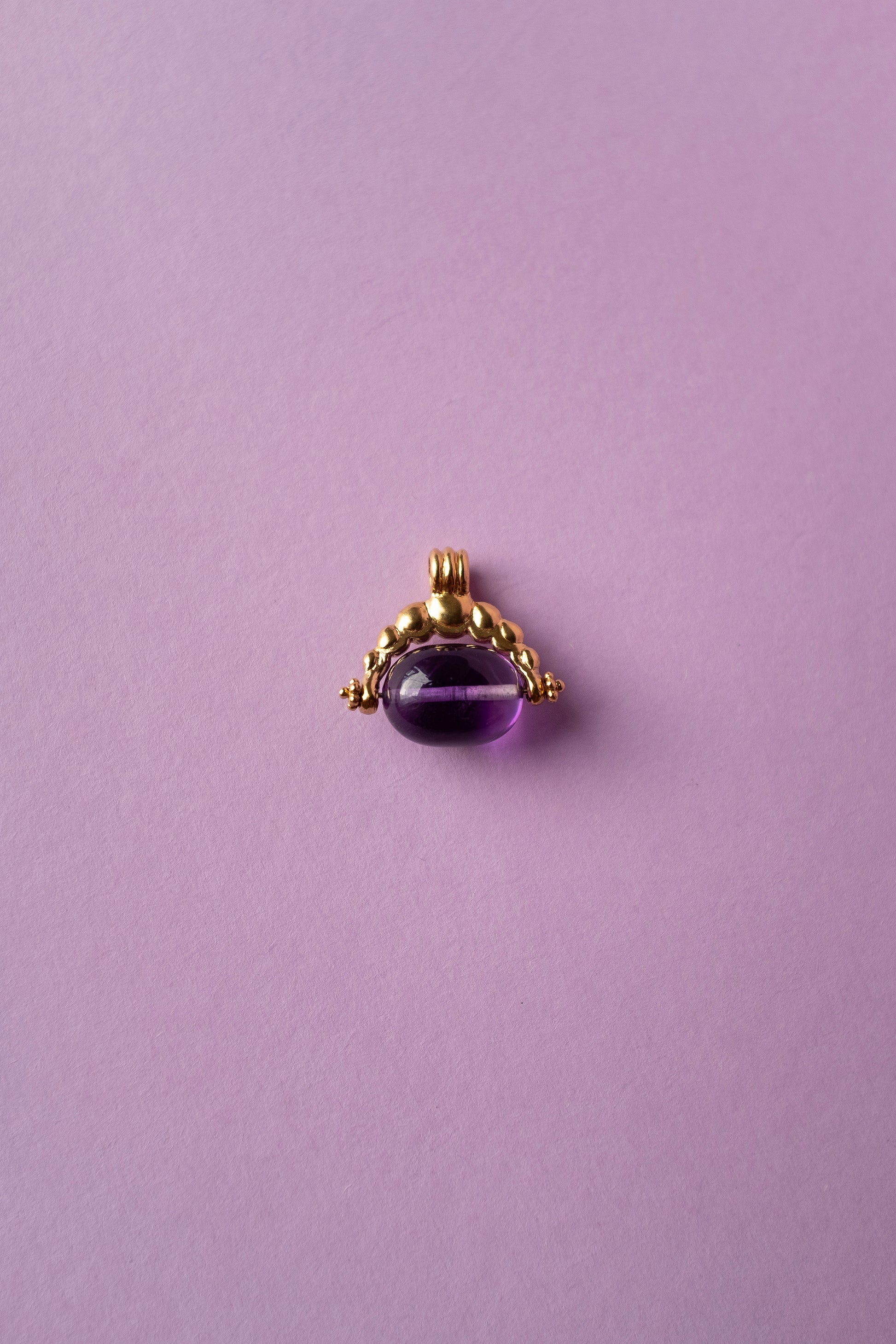 This version listed here contains an amethyst gemstone bead. Carved by hand in Holland by our trusted lapidary. This gemstone is merely an example of what can be used in the spinner. Many types of gemstone beads and bead-shapes are possible. Please send us an email if you require more information on options of gemstones and pricing, we are happy to help you find the perfect gemstone: info@rosadeweerd.com