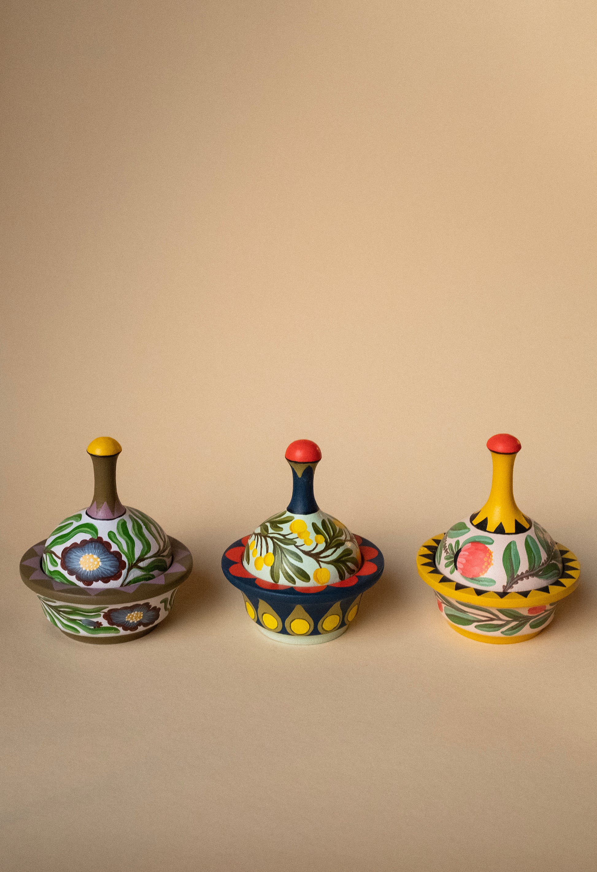 Made from walnut eco-wood, acrylics, silk velvet and lacquer.